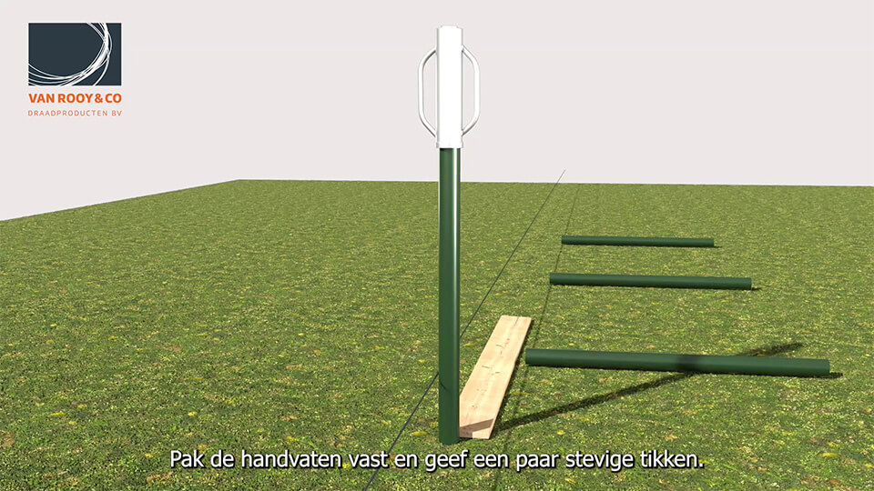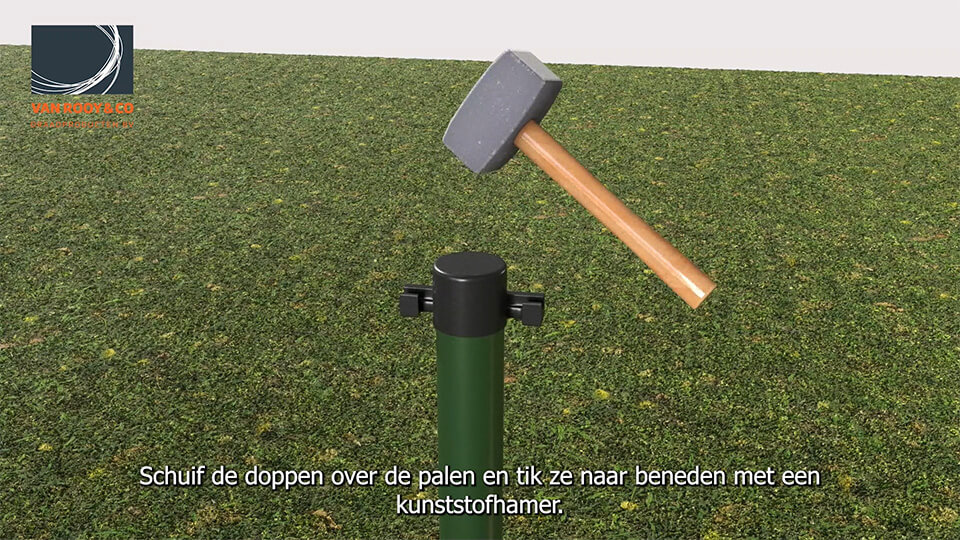 Schuif de handhij over de paal en sla deze stevig in de grond.