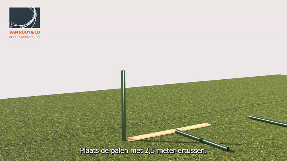 Bepaal de plaats van de palen: 2,5 meter hart-op-hart afstand.