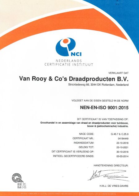 Ons bedrijf, Van Rooy & Co's Draadproducten BV, bestaat meer dan 80 jaar. In 1937 startte Van Rooy & Co in de Wolstraat in het oude Noorden van Rotterdam en begon daar met de de handel en fabricage van draad en gaas. Tijdens de dynamische periode van de Rotterdamse wederopbouw, na de Tweede Wereldoorlog, was Van Rooy & Co een begrip. Met name door de leveranties van draadnagels en gaas. Er werd nogal wat afgetimmerd in die tijd. Bij Van Rooy stonden de weefgetouwen en zware machines dag en nacht te stampen, midden in een woonwijk.
