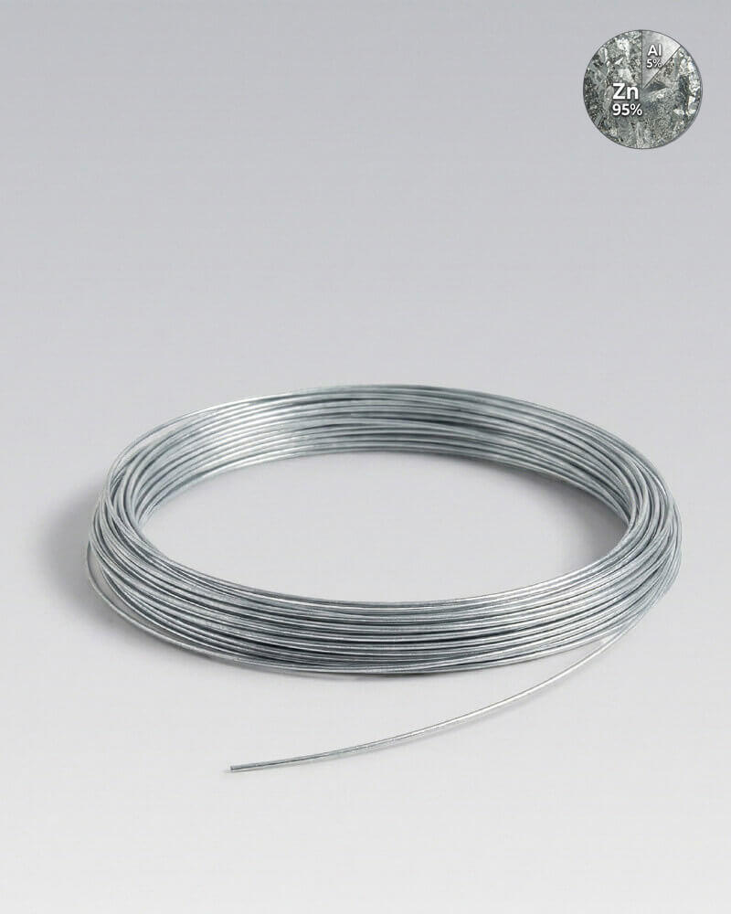 Crapal draad is staaldraad met een hoogwaardige coating van 95% zink en 5% aluminium. Deze combinatie zorgt voor een sterkere en duurzamere bescherming tegen corrosie dan standaard verzinkt draad. Hierdoor gaat het draad langer mee, zelfs in vochtige omgevingen waar gewasdraad intensief wordt gebruikt.