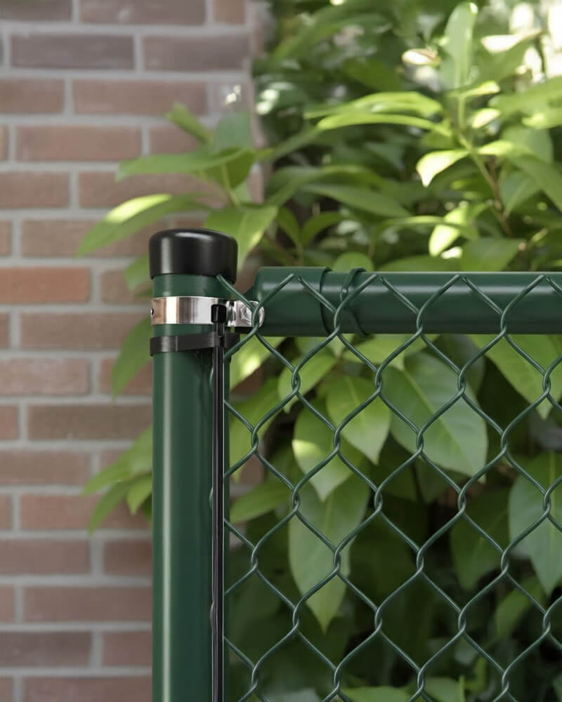 Harmonicagaas wordt opgespannen tussen palen met behulp van bovenbuizen, spanstaven en binddraad of klemmen. Door het spiraalontwerp kan het gaas gelijkmatig onder spanning worden gezet, waardoor een strak en stabiel geheel ontstaat.