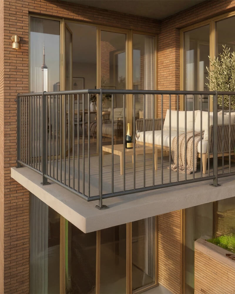 Dit rechte balkonhek wordt veel toegepast bij: