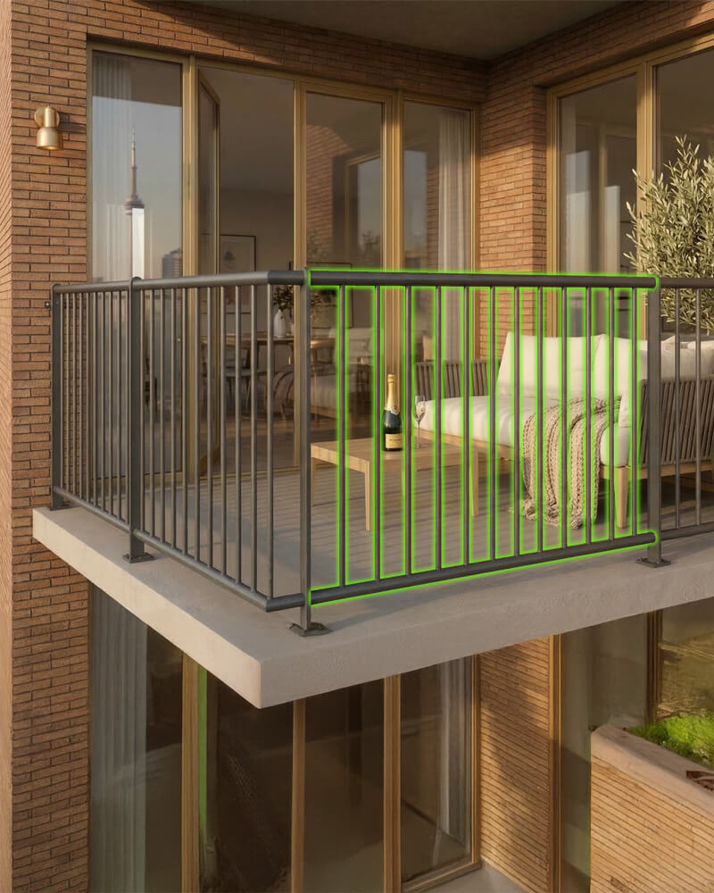 Het rechte balkonhekdeel vormt de basis van ons modulaire balkonsysteem. Het wordt gebruikt om balkons, terrassen en verhoogde buitenruimtes veilig af te bakenen. Het paneel is gemaakt van blank staal dat na productie thermisch wordt verzinkt, waardoor het uitstekend beschermd is tegen roest en langdurige blootstelling aan weersinvloeden.