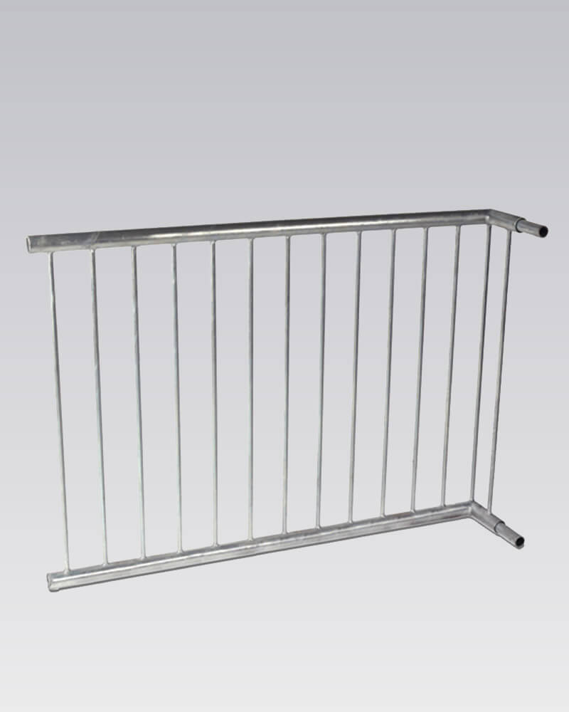 Met een hoogte van 900 mm (zonder onderconstructie) en een hoekopstelling van 170 mm + 1250 mm vormt dit hek een vaste hoek die eenvoudig aan te sluiten is op andere rechte hekdelen. Dankzij de man-vrouwverbinding schuif je de hekwerkdelen eenvoudig in elkaar zonder lassen.