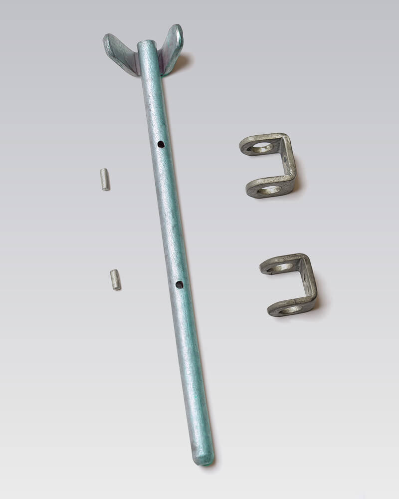 De set bestaat uit een robuuste grendelstang met verankeringspen en beugels voor montage. De pin schuift soepel in de grond, waardoor de poort stabiel blijft – zelfs bij harde wind of veelvuldig gebruik.