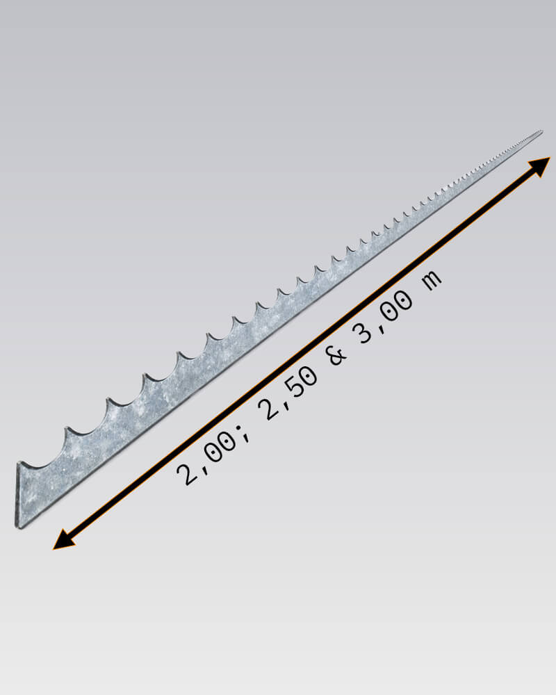 Met beschikbare lengtes van 1 meter, 2,5 meter en 3 meter is de puntkam makkelijk aan te passen aan verschillende situaties – van kleine tuinomheiningen tot grotere terreinafsluitingen. Voor specifieke projecten zijn ook maatwerkoplossingen mogelijk. De strip wordt direct bovenop een hekwerk of muur geplaatst en kan eenvoudig worden bevestigd met schroeven, bouten of door lassen, afhankelijk van de ondergrond.