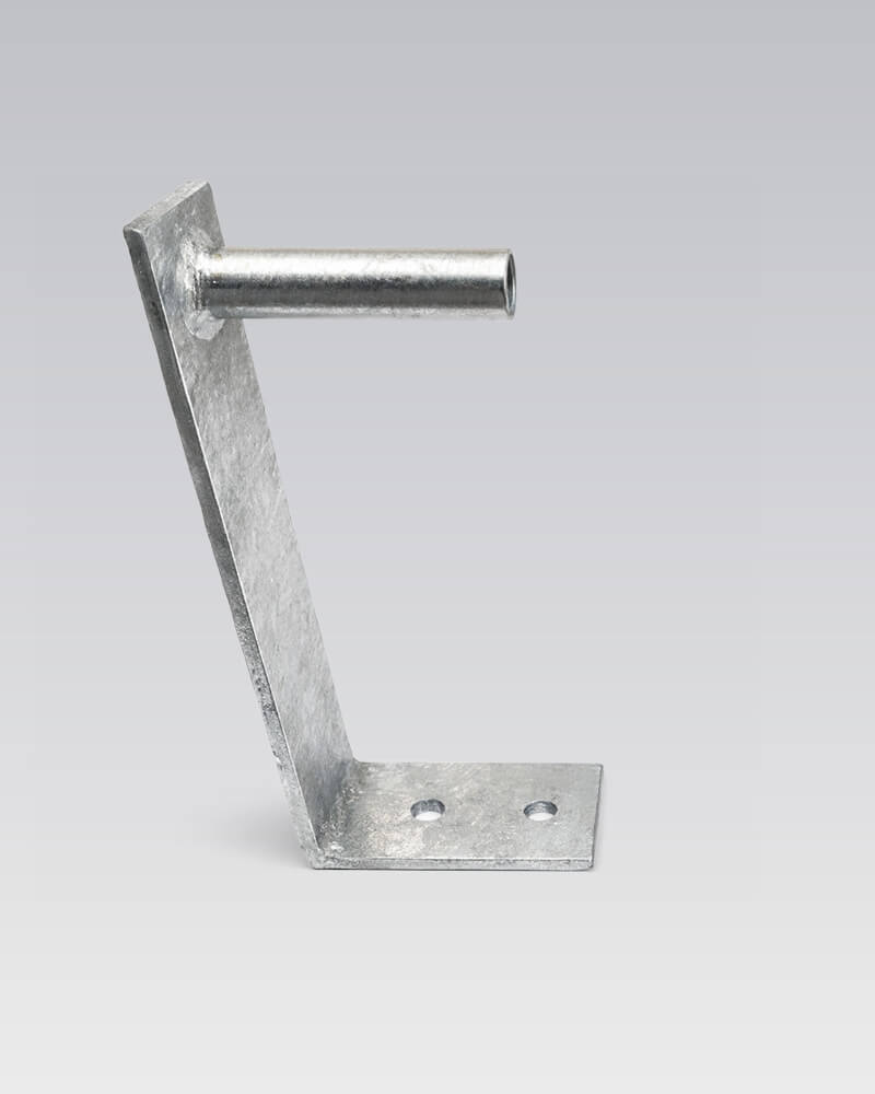 Beide beugels is gemaakt van thermisch verzinkt staal, waardoor het geschikt zijn voor langdurig buitengebruik in uiteenlopende omstandigheden. De montageplaten zijn voorzien van boorgaten voor eenvoudige bevestiging op steen, beton of staal.