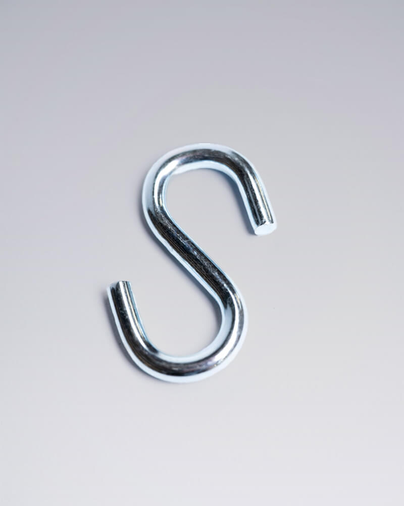Verzinkte S-haken voor verschillende ophangtoepassingen in onder andere de tuin- en kassenbouw.
