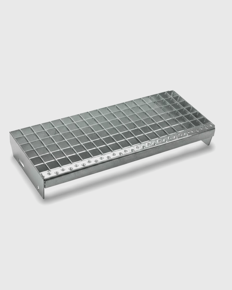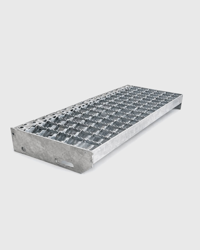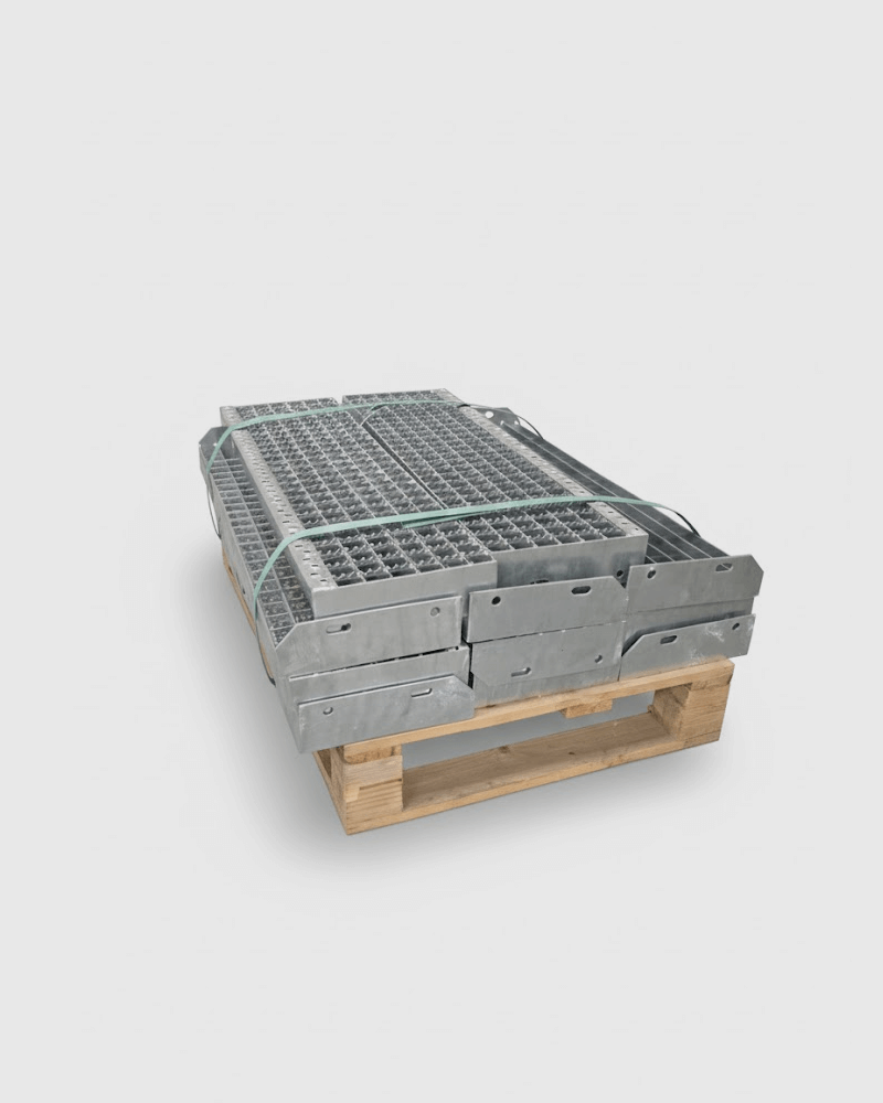 Deze verzinkte traptreden met zijplaten zijn ontworpen voor functioneel gebruik in industriële trappen, bordessen en andere stalen trapconstructies. De treden zijn vervaardigd uit persrooster en leverbaar in zowel een gladde uitvoering als een antislipvariant, waarbij in de draag- en vulstaven kleine inkepingen zijn gestanst. Dit zorgt voor extra grip onder natte of vervuilde omstandigheden.