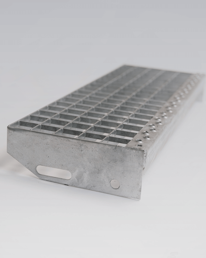De zijkanten van de traptrede zijn voorzien van 70 mm hoge zijplaten met voorgeboorde bevestigingsgaten, zodat de treden eenvoudig aan trapbomen bevestigd kunnen worden met bouten en moeren. Door de verzinkte afwerking zijn de treden goed bestand tegen corrosie en geschikt voor zowel binnen- als buitentoepassingen.
