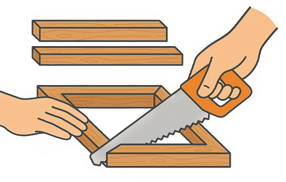 Zaag vier houten latten (2 lange, 2 korte) op maat volgens je metingen.