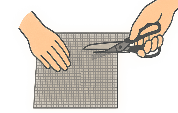 Knip het RVS gaas op maat met een blikscharen of metaalschaar.