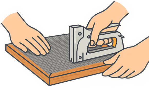 Trek het gaas tijdens het nieten steeds strak om plooien te voorkomen.
