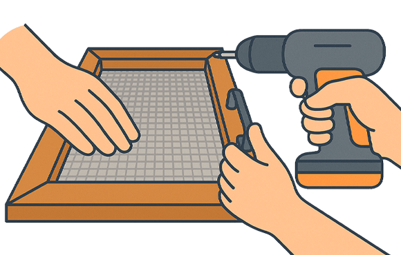 Plaats het RVS gaas bovenop en span het gelijkmatig aan.