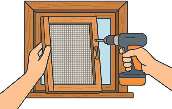Monteer het frame in het kozijn met scharnieren, clips of magneten.